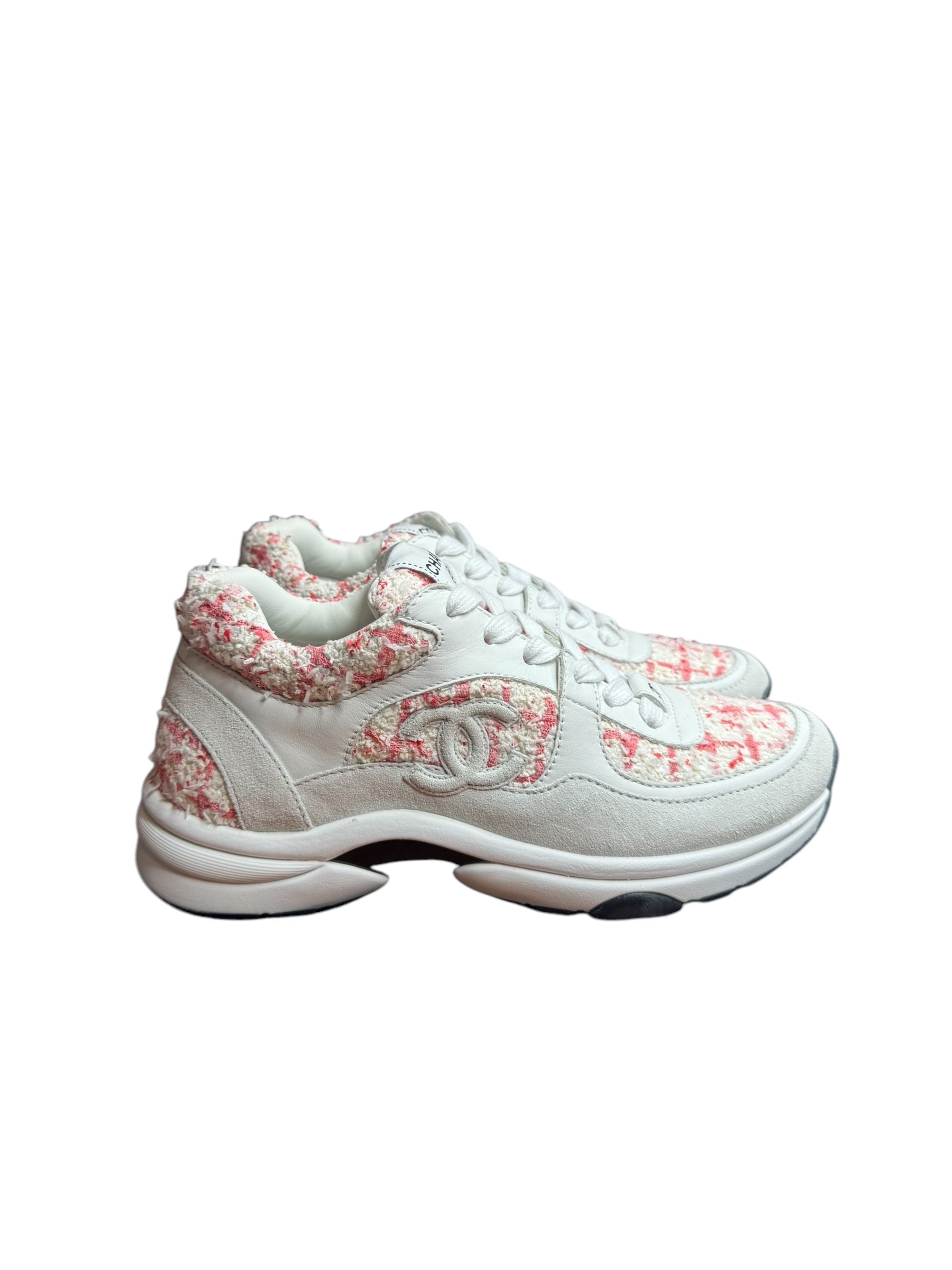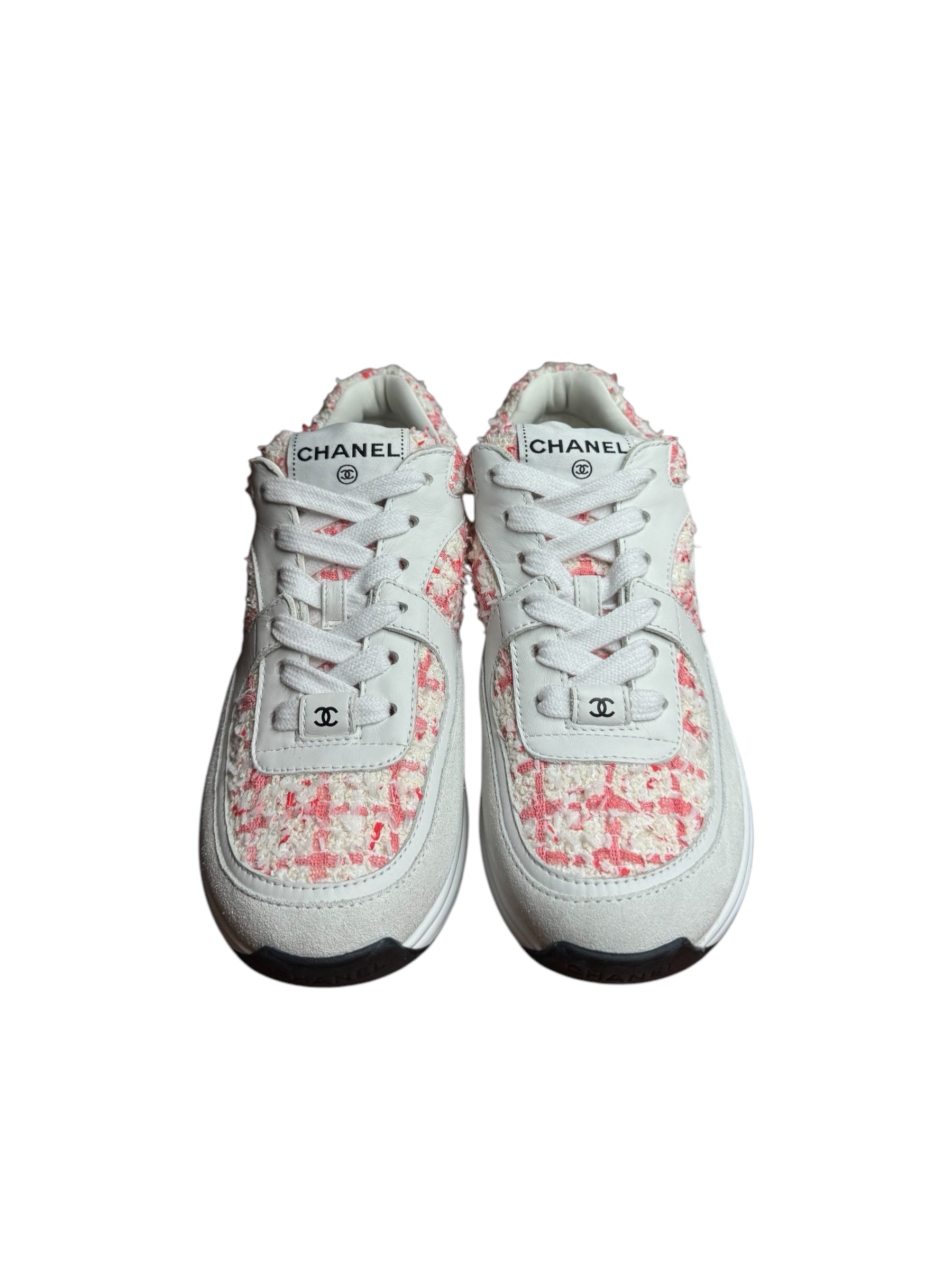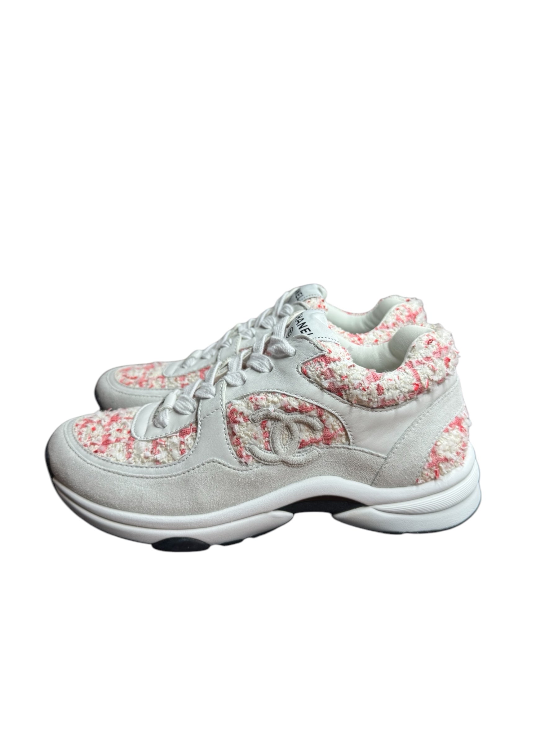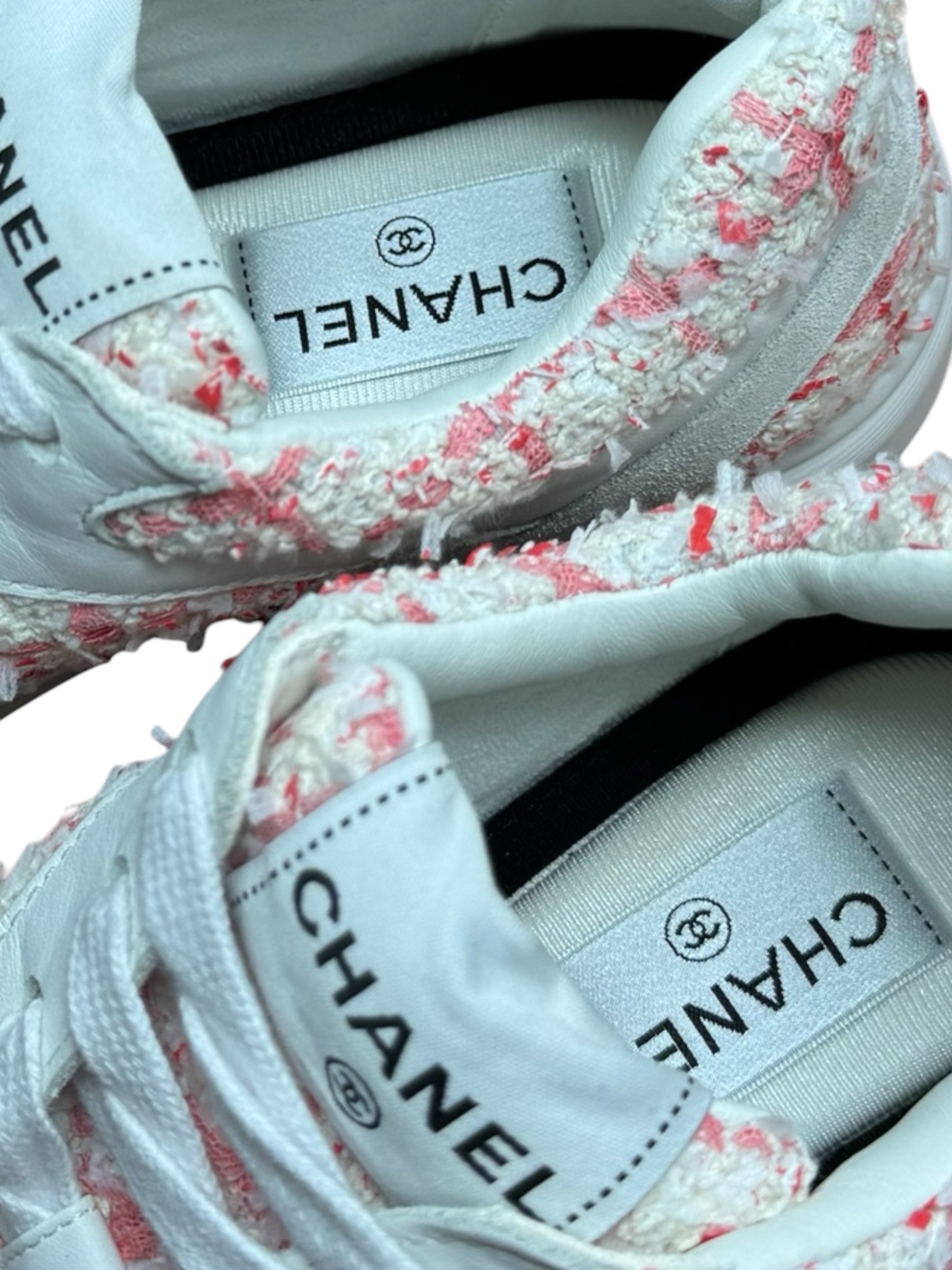 Chanel women’s CC logo “ Ecru Pink Tweed” Sneaker