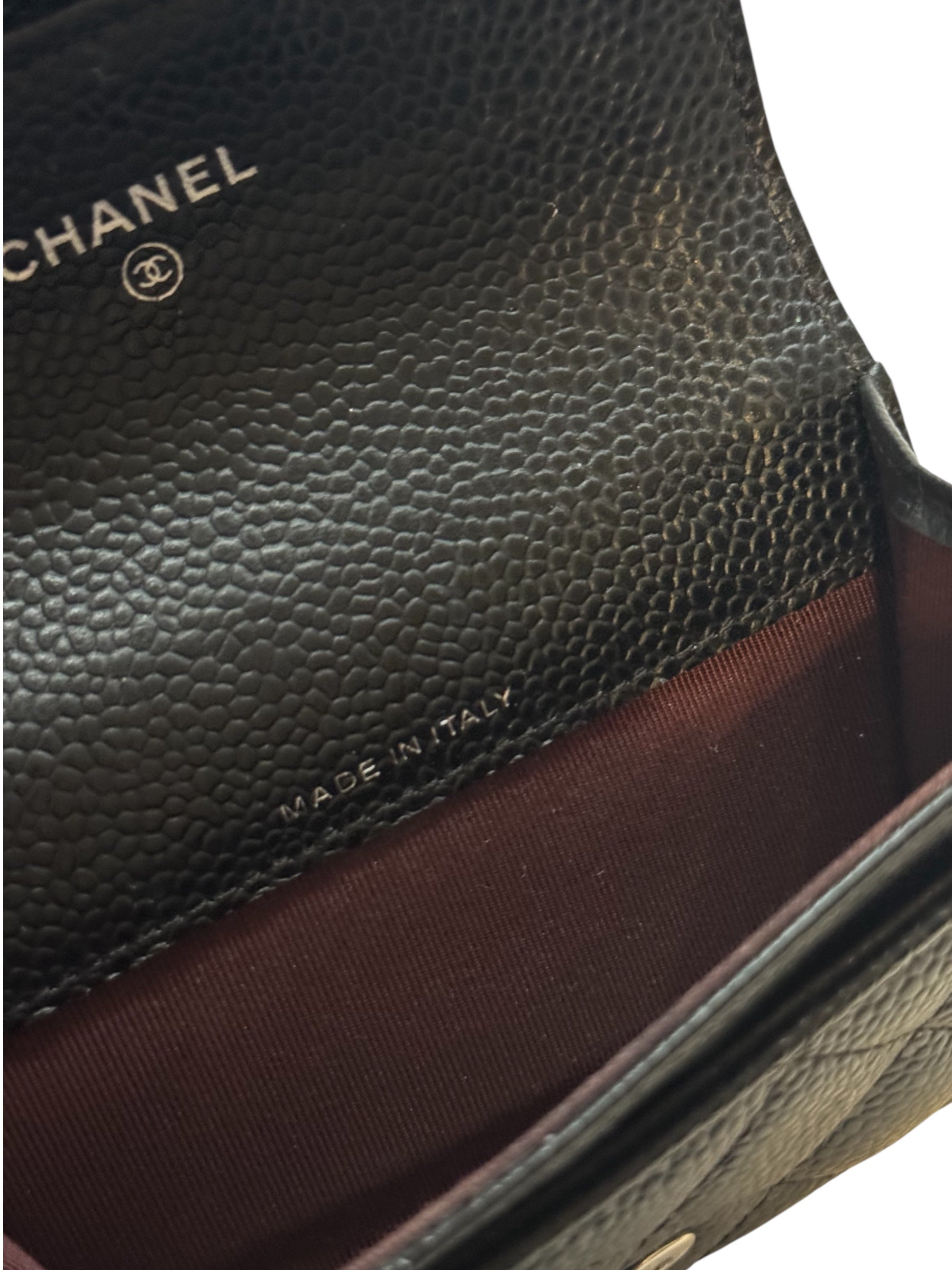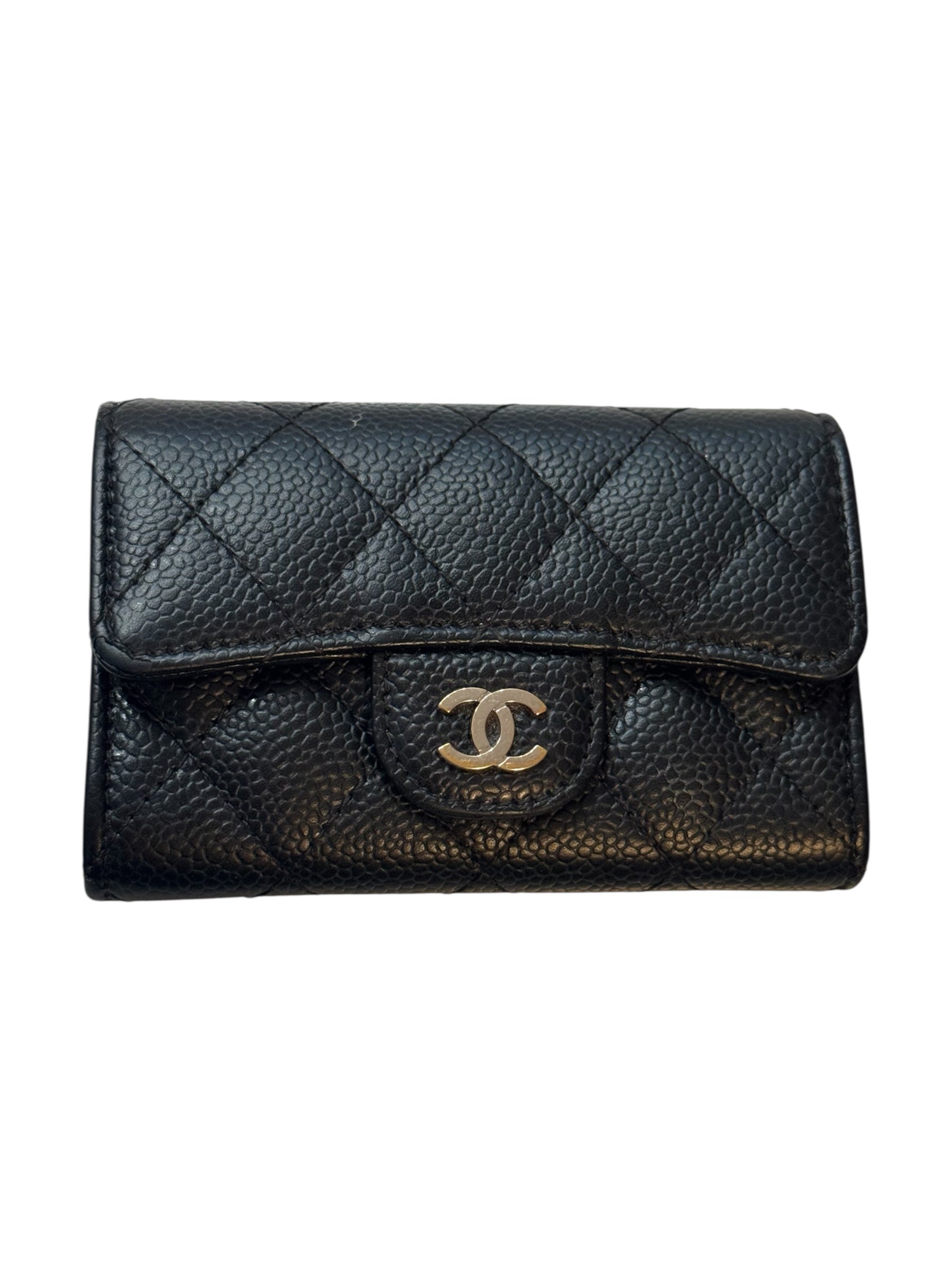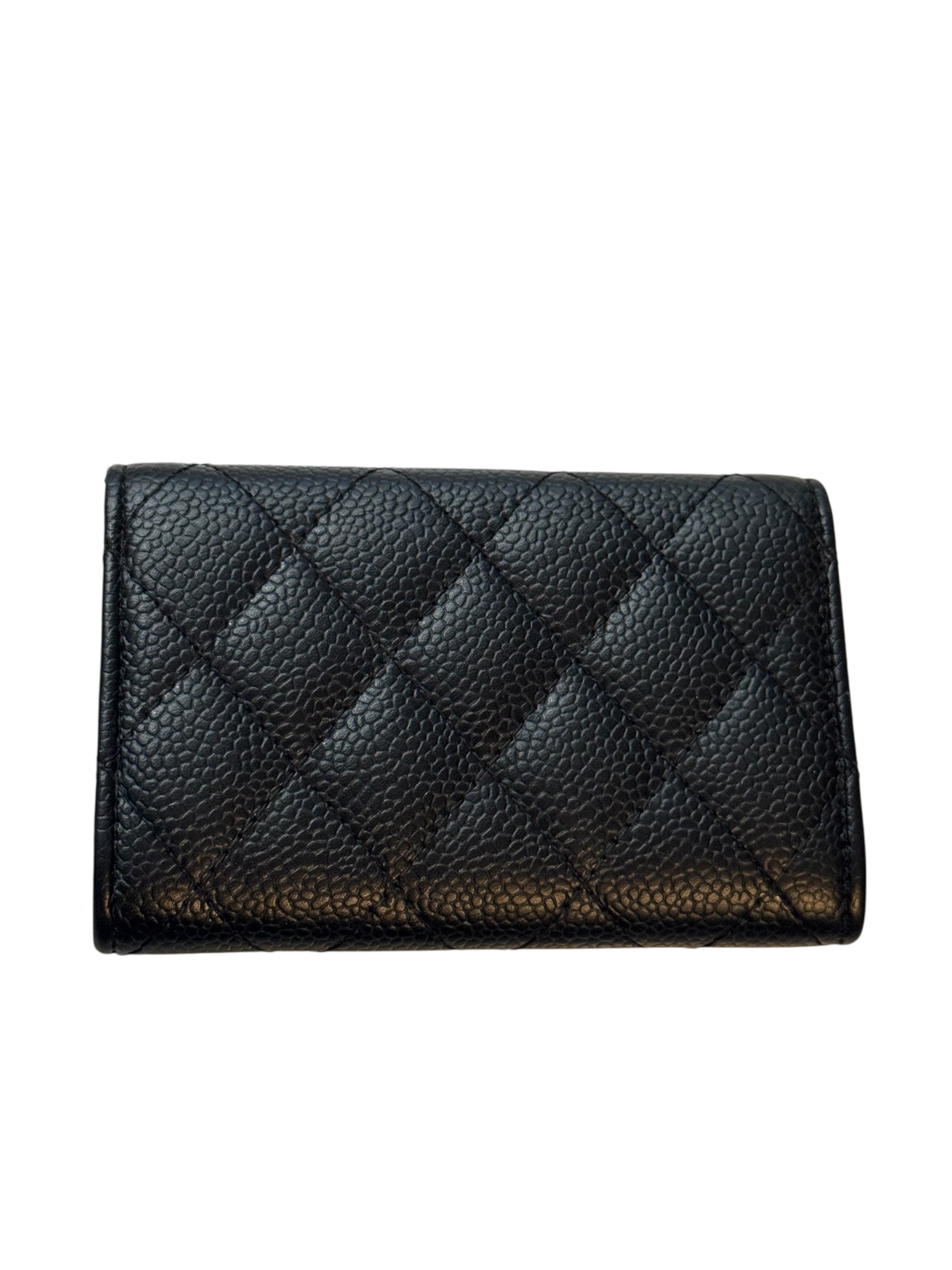 Chanel Classic Quilted CC Trifold Wallet Black Caviar Leather