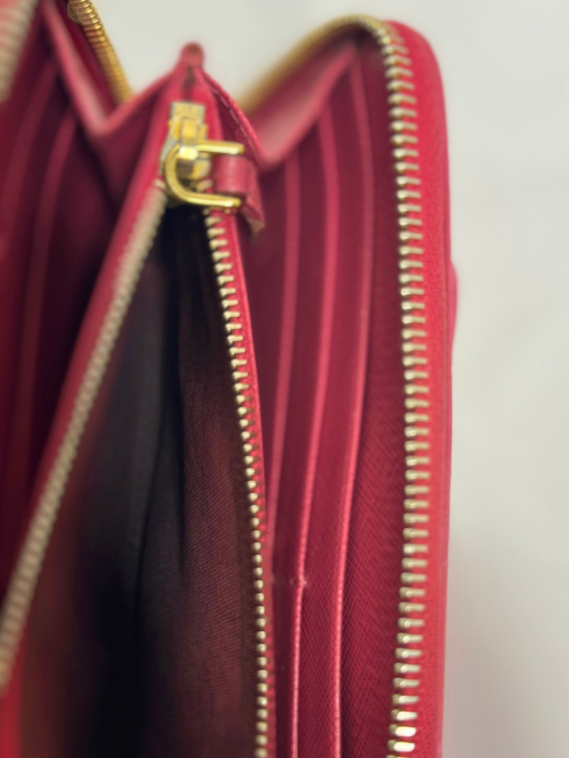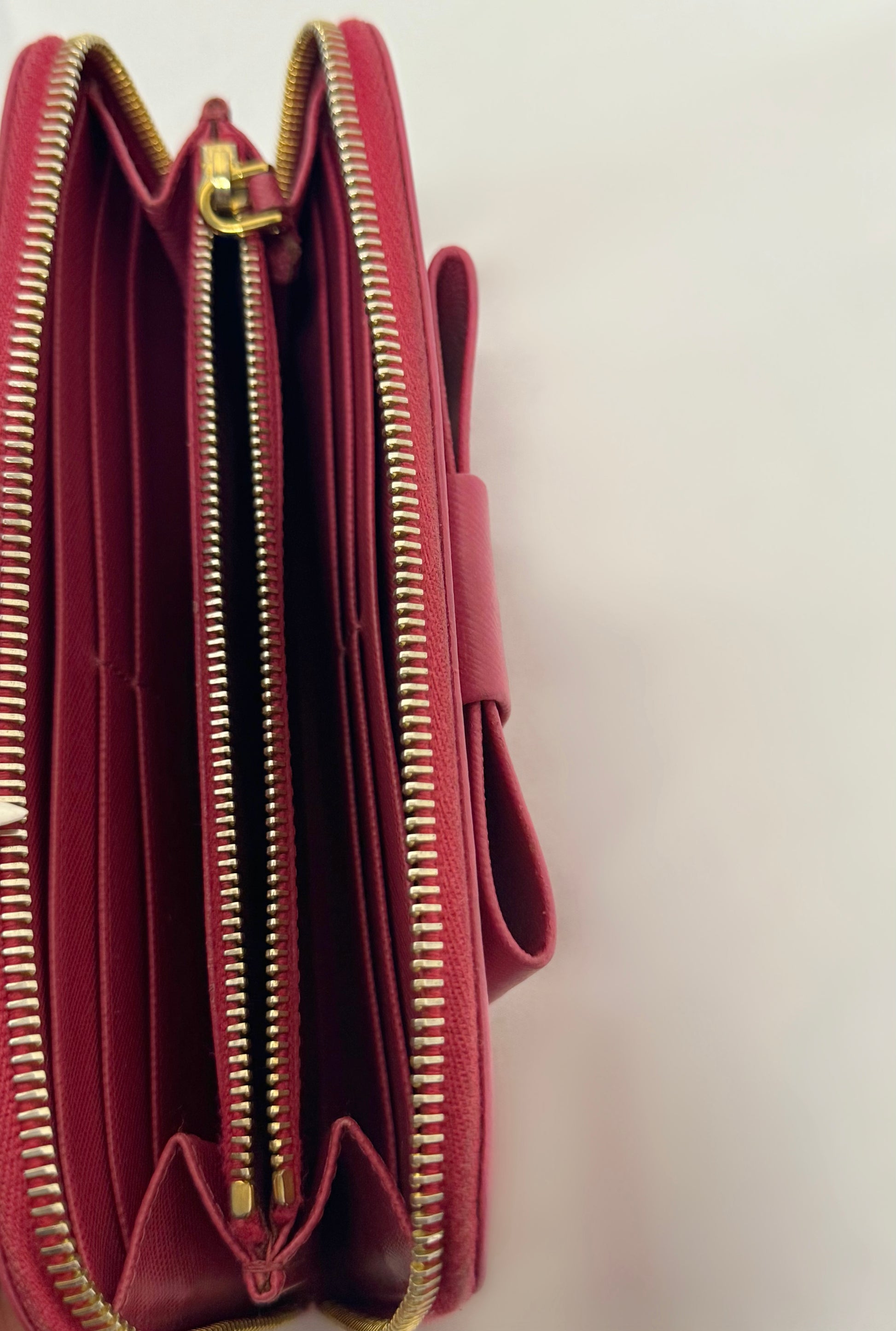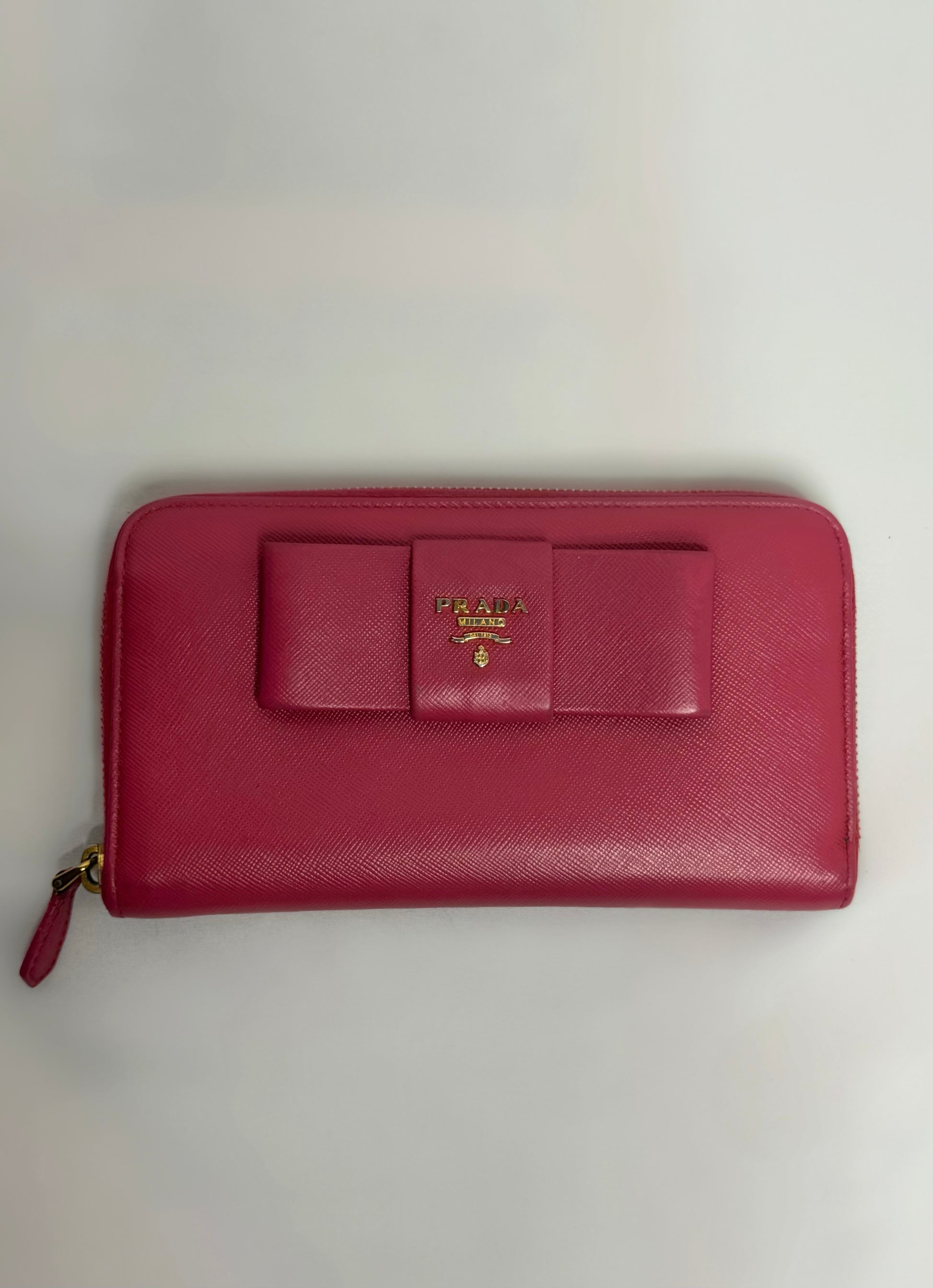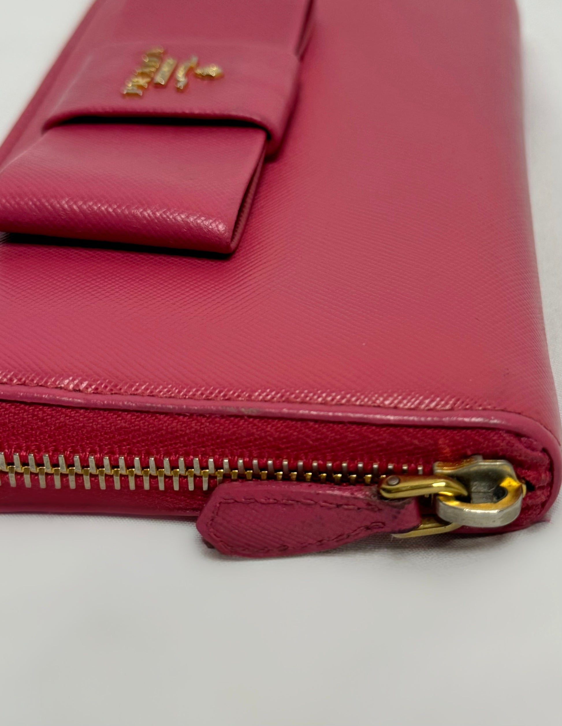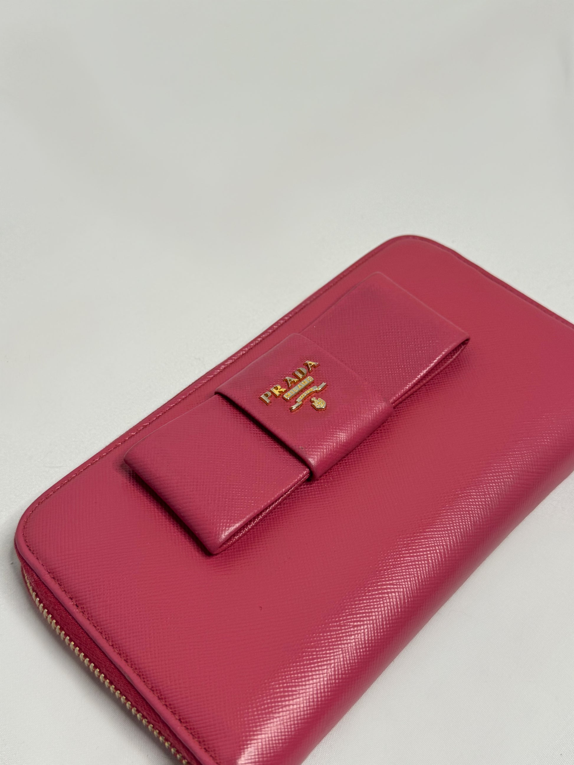 Item : Prada Pink Saffiano Leather Long Zip Bow Wallet